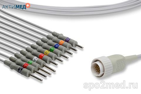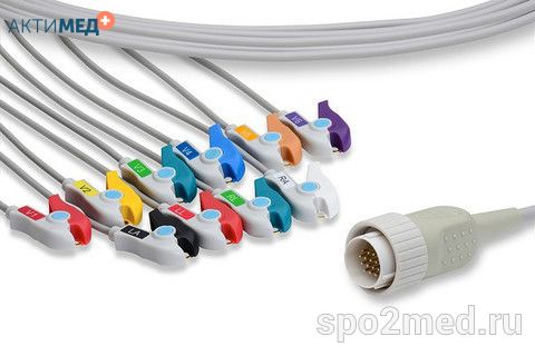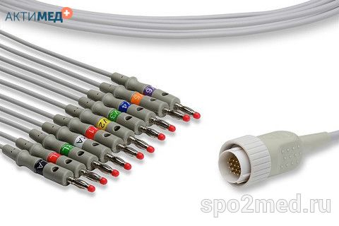 E10R-KZ1-B/I, Кабель пациента электрокардиографический для подключения пациента к монитору (единый), Kenz, двенадцатиэлектродный, 10 отведений, 3.4м, тип "банан"