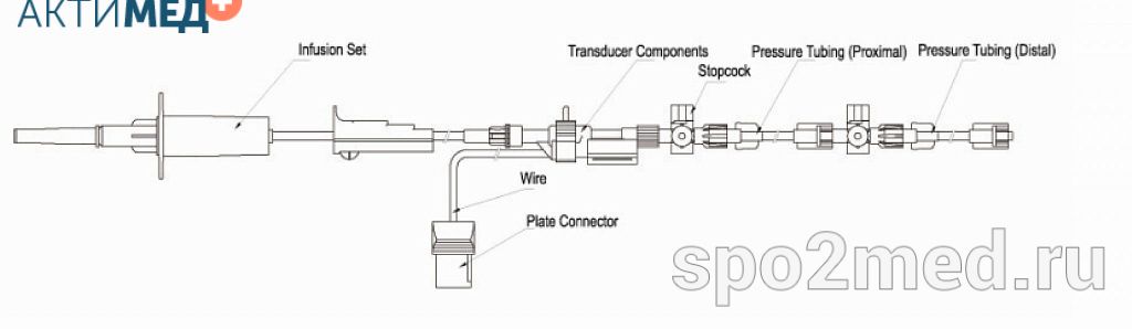 Датчик (трансдьюсер) для инвазивного измерения артериального и венозного давления, одноканальный преобразователь.
