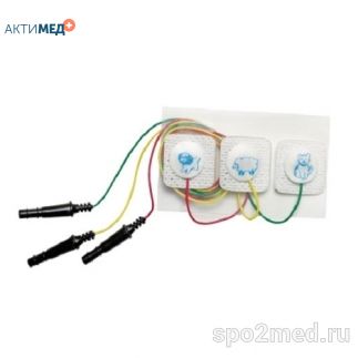 Одноразовые серебряные/хлорсеребряные ЭКГ электроды для детей и новорожденных; с кабелем и с 3 цветными отведениями, тканевые, квадратные, размер 22x22 мм.